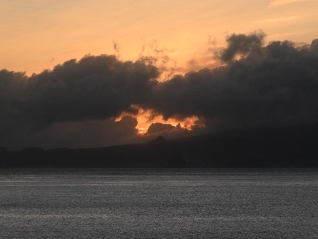 Frühschicht: Der Teufel höchstpersönlich schiebt die Wolken der Nacht zu Tagesbeginn beiseite; Horta, Faial, Azoren, Portugal