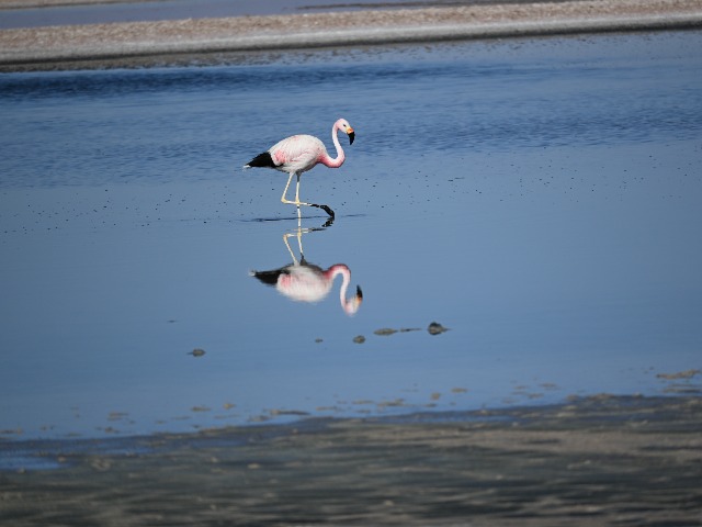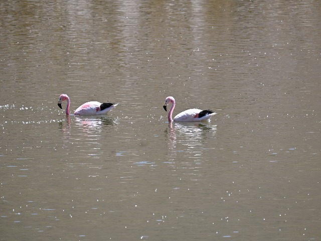 In den wenigen Oasen der Atacamawüste und deren Umgebung, z.B. in der Machuca Lagune auf 3.800 m Höhe, trifft man immer wieder auf bis zu 3 Flamingoarten, am häufigsten auf den Chileflamingo mit seinem schwarzen Schnabel, rosa Hals, weißem Federkleid und schwarzem Schwanzgefieder – ausgesprochen elegante Vögel