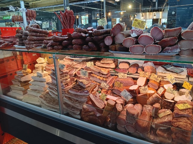 Fleisch spielt eine große Rolle in der baltischen Küche. Neben den frischen Angeboten gibt es Räucherwaren in Hülle und Fülle, Schinken, Speck und Wurstwaren. Das leckere, aber ungewohnte Räucheraroma kommt vermutlich am zum Räuchern oft verwendeten Erlen- und Wacholderholz