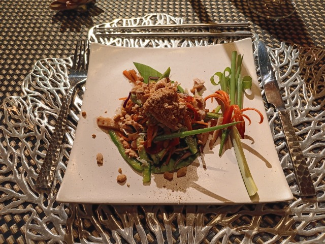 Vorspeise: Hähnchen-Gemüse-Salat mit Khmer-Dressing, nicht nur optisch, sondern auch geschmacklich ein Hochgenuss