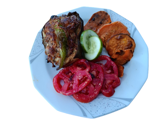 Gefüllte Aubergine mit Tomaten und Süßkartoffel