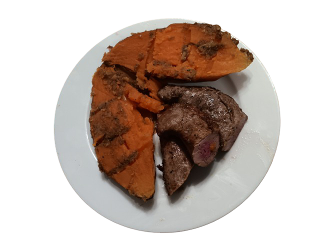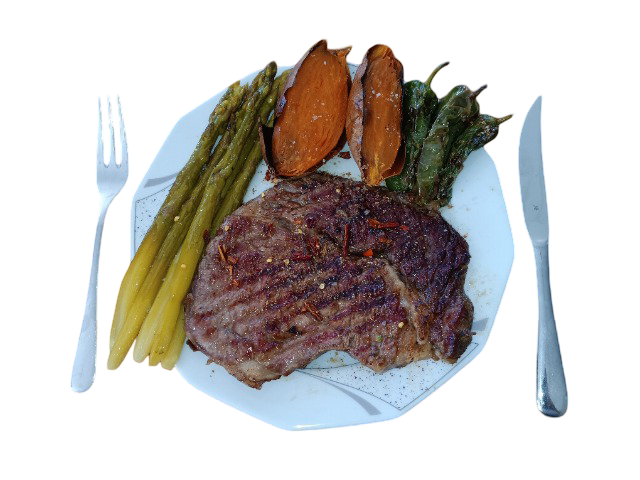 Grillen ist viel mehr als nur Fleisch. Ein ganzes Gericht lässt sich leicht auf dem Webergrill zaubern, sofern man nur Süßkartoffeln („lang“), Bratpaprika und Spargel („mittel“) und Steak („kurz“ für medium-rare) unterschiedlich lange in der heißen Zone grillt und in der indirekten Zone nachziehen lässt
