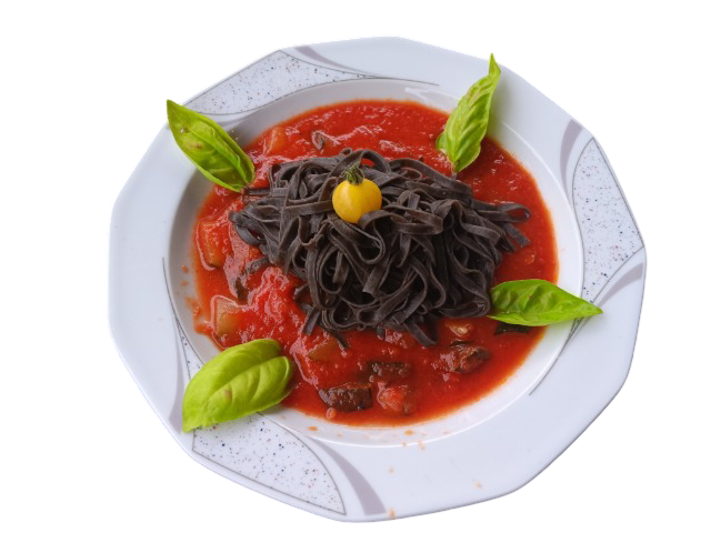 Sepiaspaghetti auf Tomaten-Zucchini-Sauce